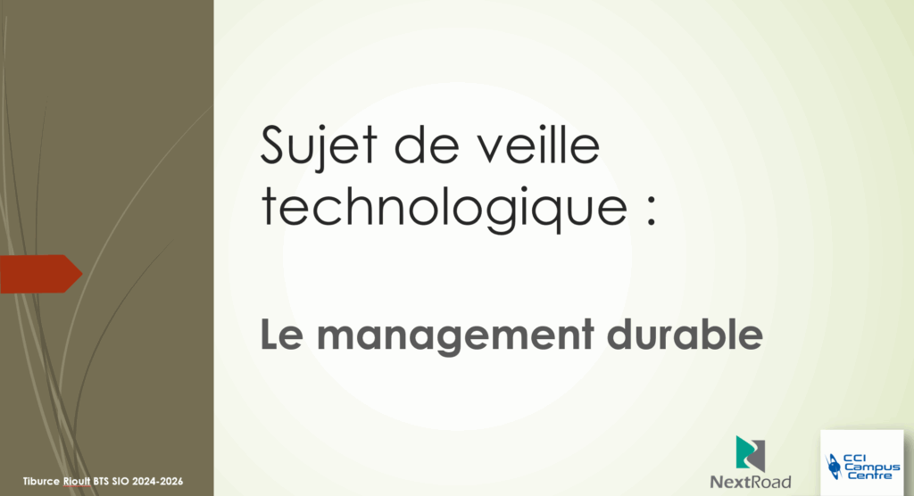 Dans le cadre de mon BTS SIO option SISR, j’ai mené une veille technologique sur le management durable, une approche de gestion qui vise à intégrer les enjeux environnementaux, sociaux et économiques dans la stratégie des organisations. Cette veille m’a permis de comprendre les principes fondamentaux du management durable, les normes qui l’encadrent (comme l’ISO 26000 ou la directive CSRD), ainsi que ses impacts concrets sur la performance des entreprises et leur image. J’ai également étudié des exemples de bonnes pratiques et les perspectives d’évolution de ce modèle dans un contexte de transition écologique et sociétale. L’objectif de ce travail était de mieux cerner comment les entreprises doivent adapter leur mode de gestion face aux nouvelles attentes sociétales et aux défis environnementaux.